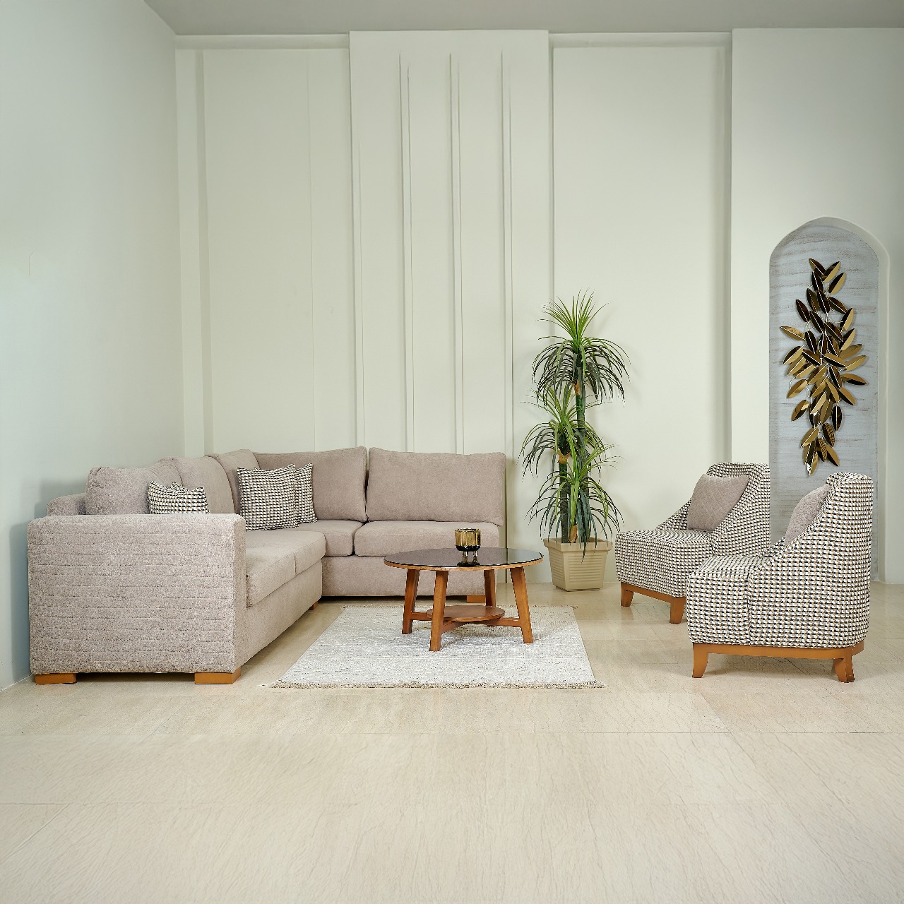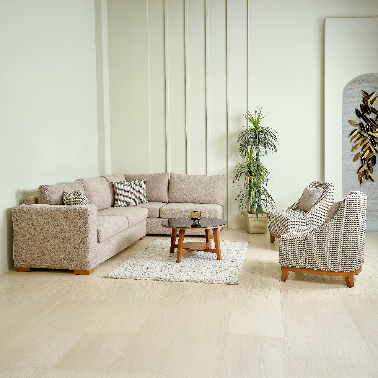 تصميم يجمع بين الراحة العملية والفخامة العصرية ليحوّل ركن المعيشة لمساحة مميزة بكل تفاصيلها.